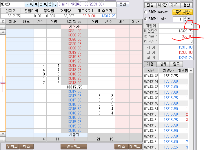 미리 분할 매도 호가창에 대 놓았더니 2개 매도가 진입 되었다.