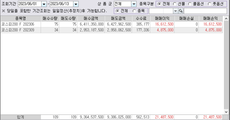 6월엔 딱 이틀 매매했다. 6월1일 ~ 6월13일 수익계좌 현황이다.