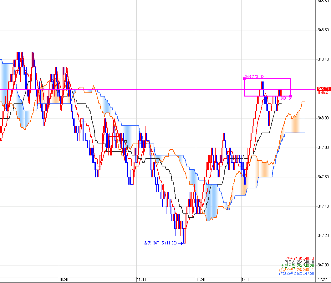 ㅋ~~~ 매수 목표가 348.20 보다 1포나 더 날라갔네~~