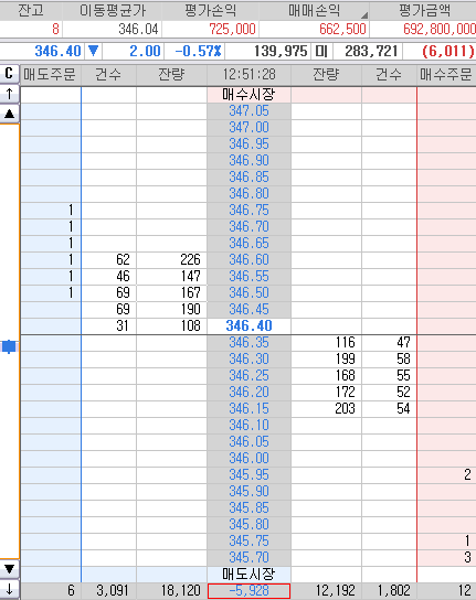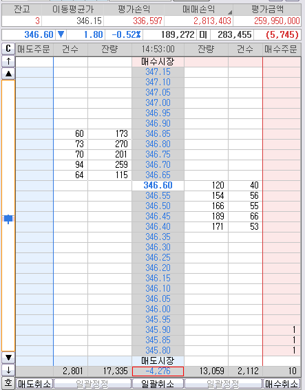 나야 땡큐지만... 346.20~345.60까지 쭉~~ 매수 대 놓고 주면 잡아 먹고~