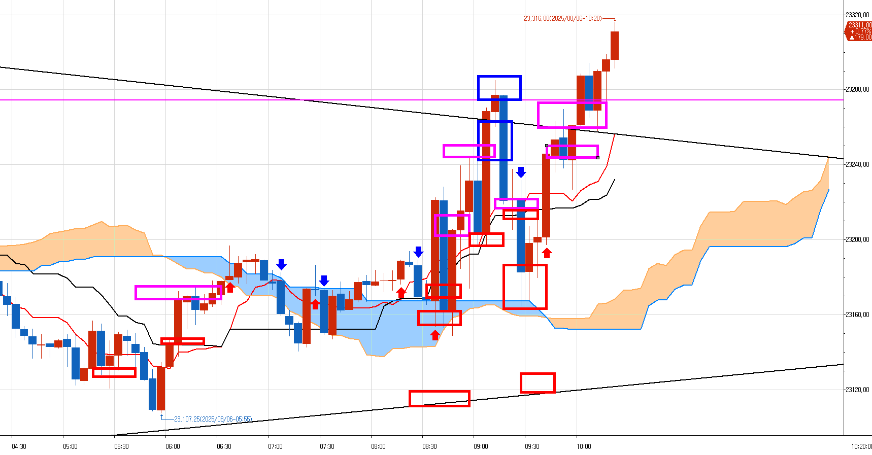 아래 분홍선들을 쳐야 2시간 공들여 매도 친 것에 대한 댓가를 제대로 받는데...