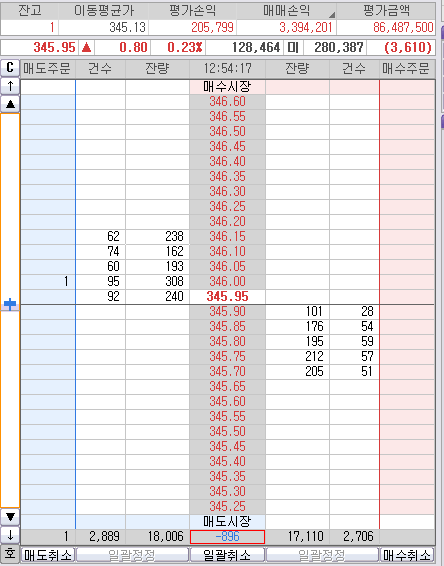 오늘 반드시 346.00은 찍으러 다시 반등한다고 일목균형표는 미리 알려주고 있었다.