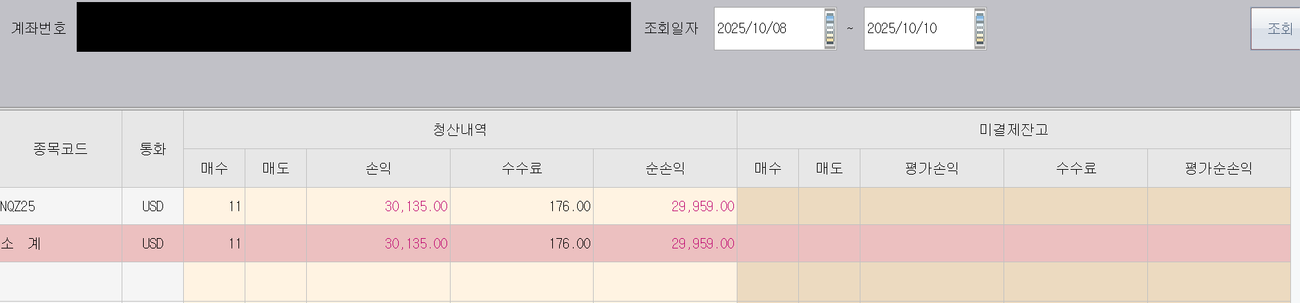 일목중생들과 함께 매매하는 마이크로 나스닥 $1300 손절. 내 본계좌 미니 나스닥 $15000 손절...