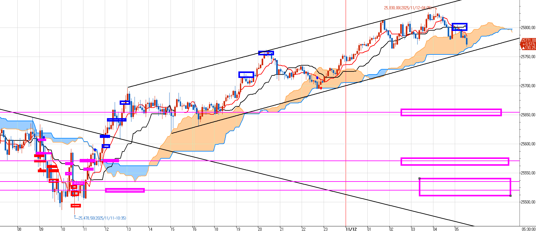 2. 11일~12일 저녁 현재 나스닥 5분봉