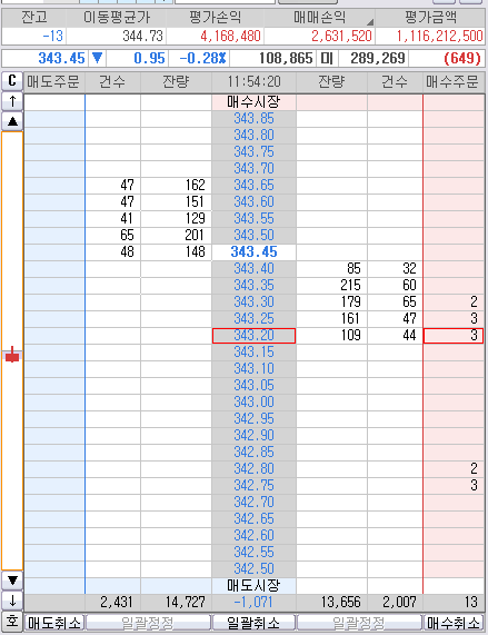옵션에서 목표가가 발생하였기에 나는 선물 매도 진입을 시작했다.