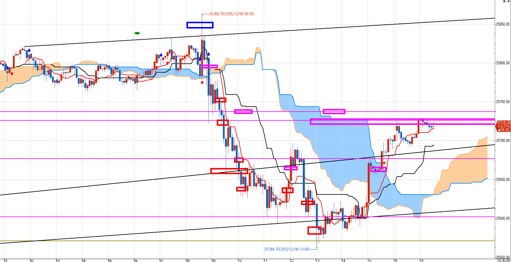 본장 막판에 올라온 것도 1차 수 목표가를 10틱 덜 치고 마감했다.