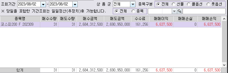 뭔 말인가 하면 7월31일 코스피 200 선물은 갭상승으로 시작하였다.