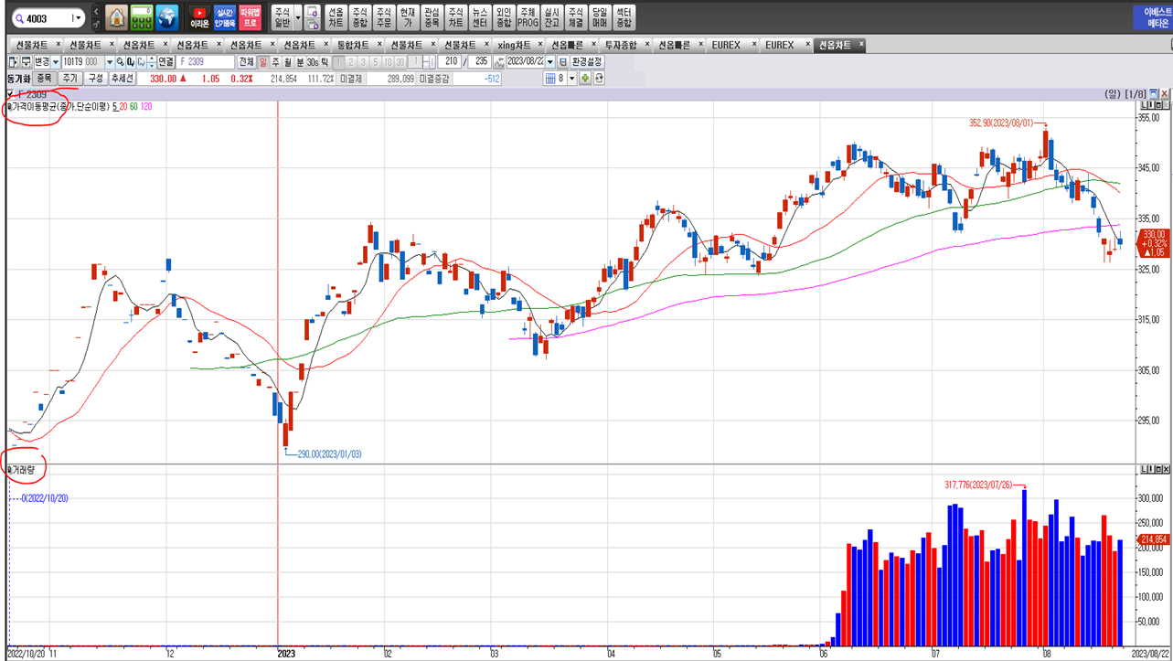 4003번은 선옵종합차트의 메뉴번호다. 여기까지 따라 했으면 기본차트가 뜰 것이다.