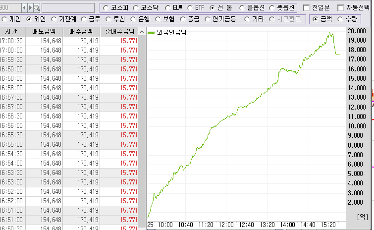 외놈들이 선물을 2조까지 샀다가 장 막판에 쪼금 팔았네