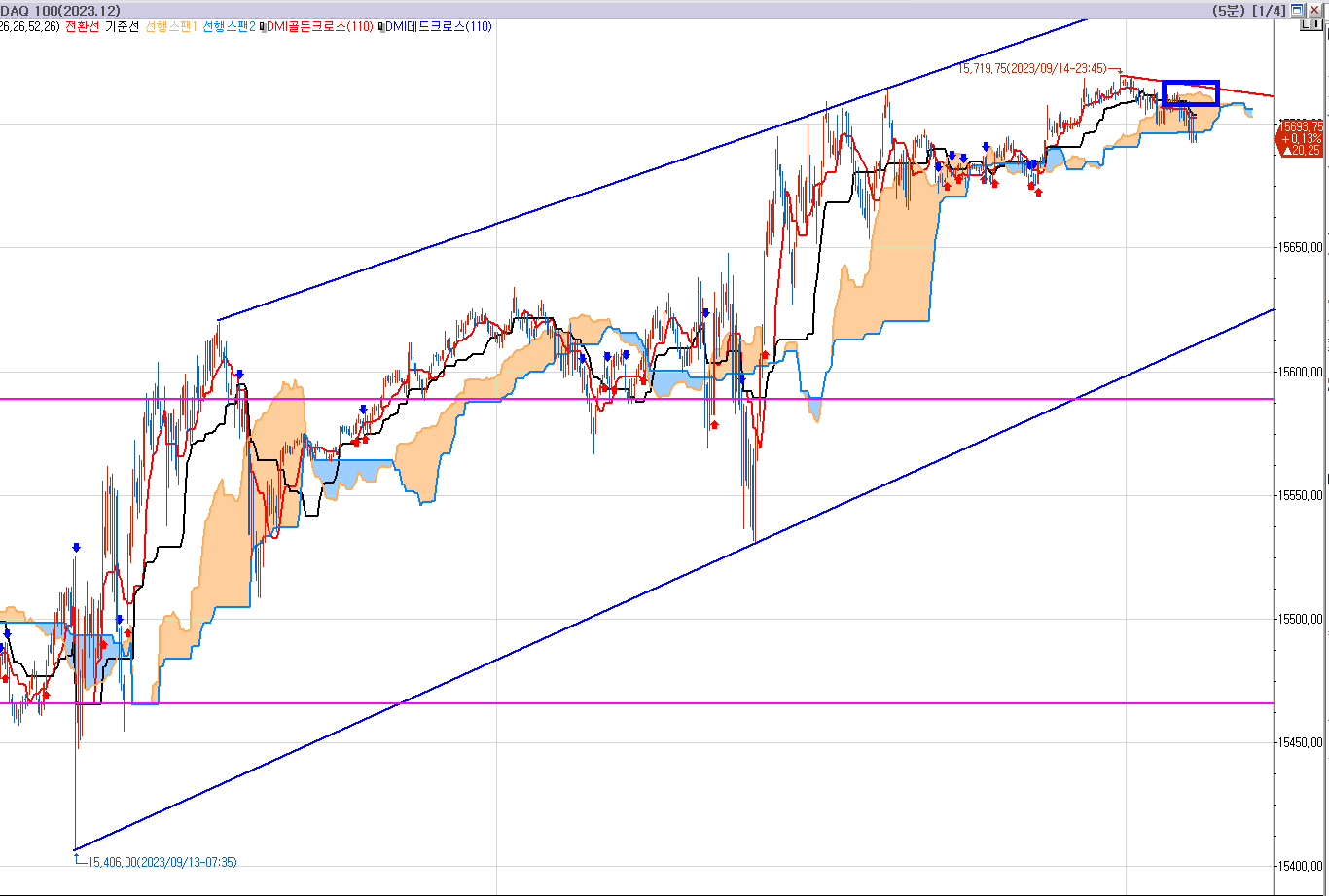74. 일목균형표 틱차트 분차트 실전매매 9월15일-나스닥, 국내선물