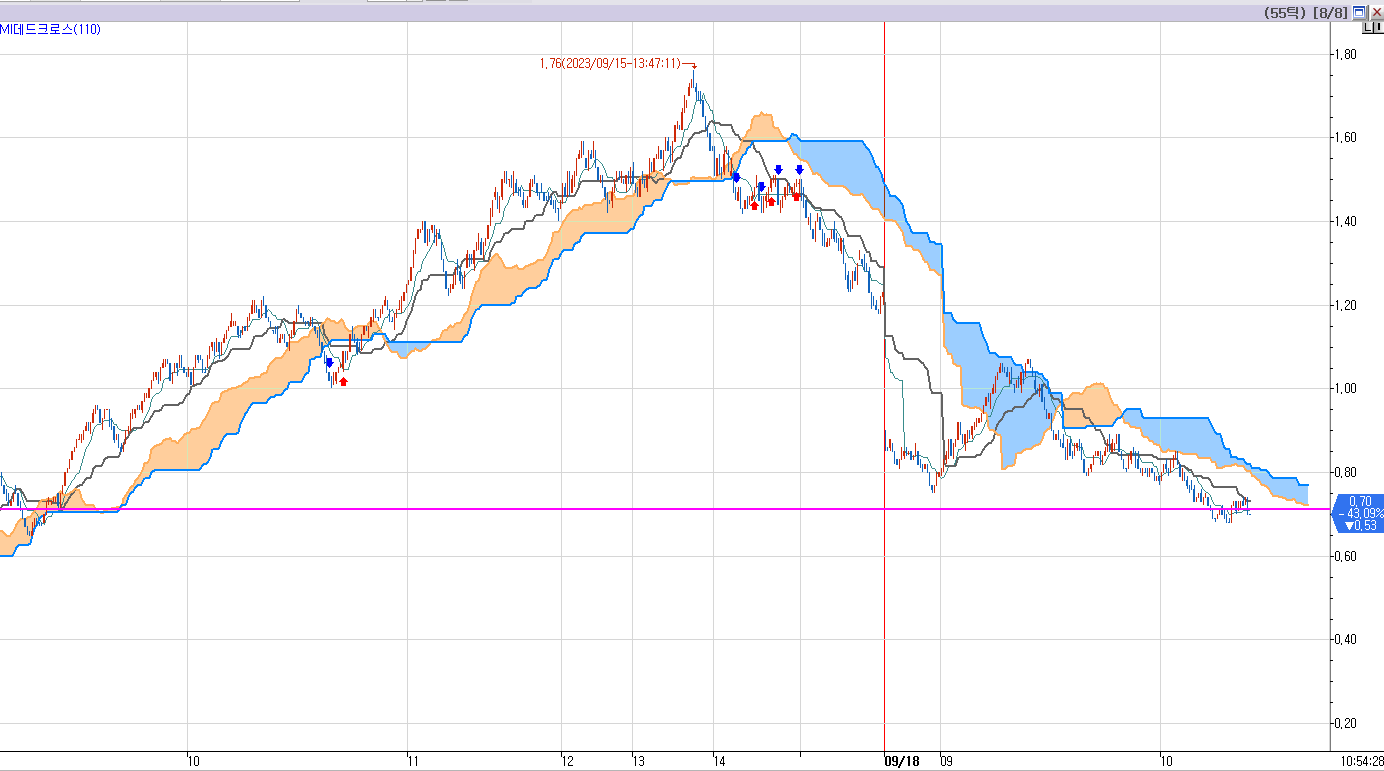 30분봉상 전환선 끝자락이다.
