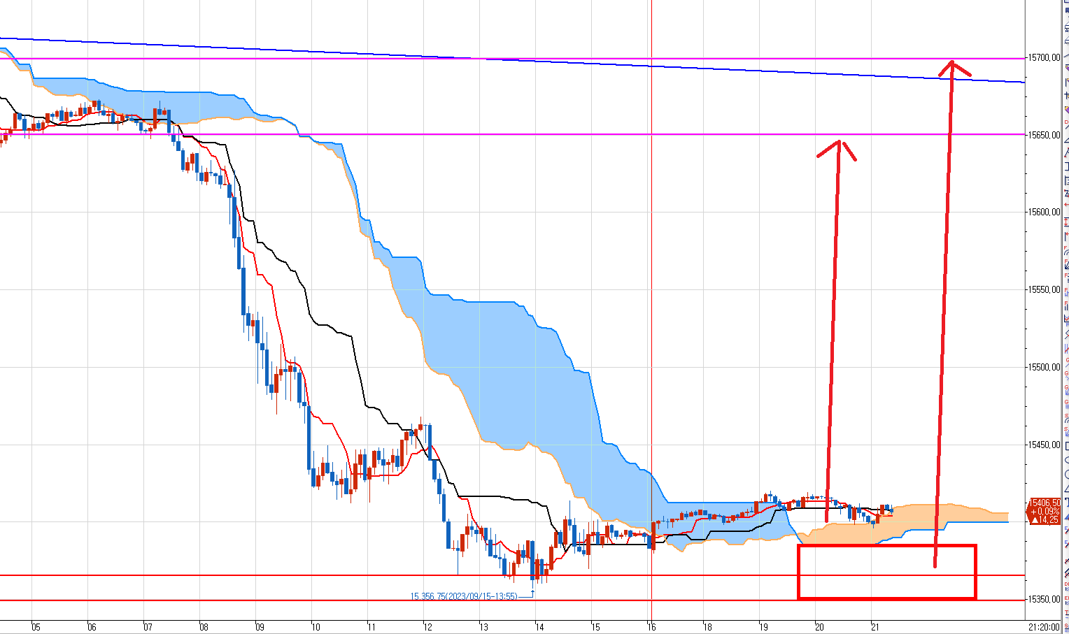 15700 5분봉 양봉으로 돌파하면 더 날라간다. 일봉상 저항선을 깨고 올라타게 되는 것이다.