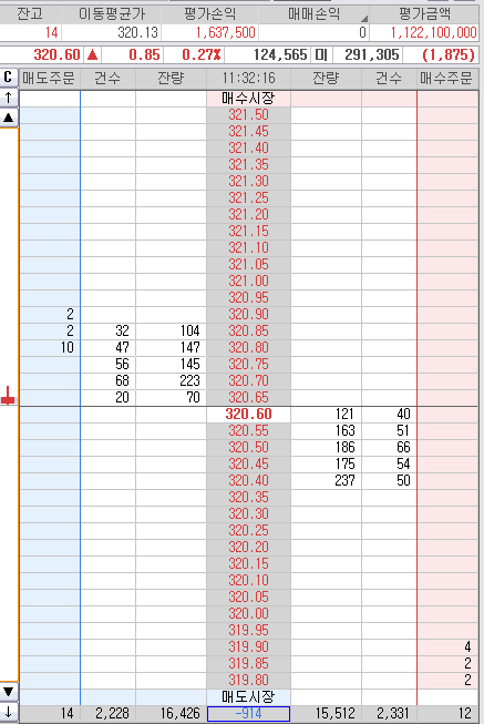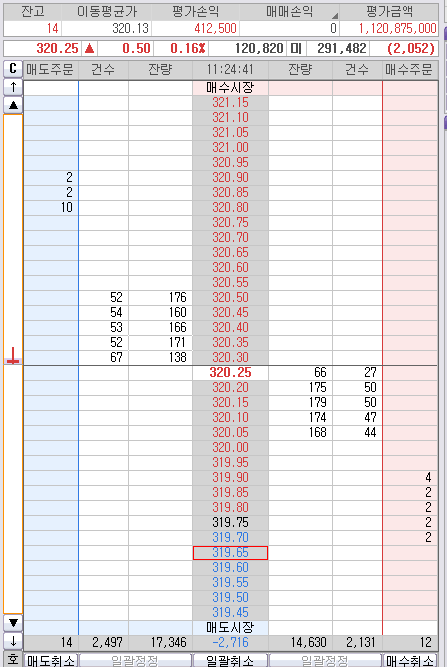 그냥 14개 시장가로 따라 잡은것은 최종 목표가 320.80~90에 몽땅 청산 걸었다.