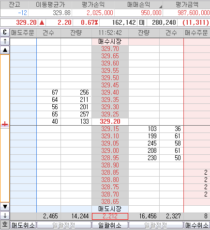 매도 목표가 328.70 부근에 80% 청산하고...