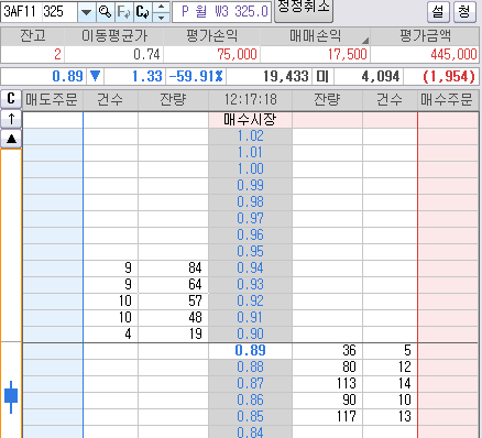 3개 풋옵션 매수 했는데... 1개는 17500원 먹고 팔고~ ㅋㅋㅋ(오늘 식비)