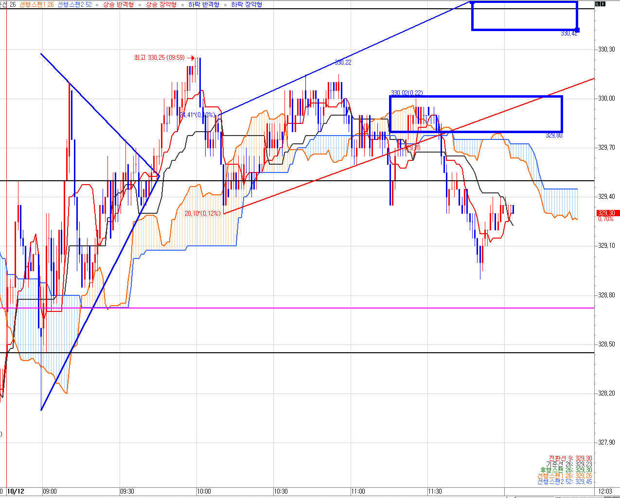 매도 1차 목표가는 328.75 (분홍색선)